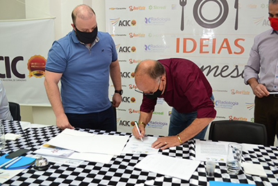 O Ideias na Mesa desta semana, contou com a presença da presidente do presidente da CDL Zani da Costa Santos; o presidente do HCC e vice-presidente da Área Comercial da ACIC, Jocélio Nissel Cunha e Alexandre Schmitz, Conselheiro Fiscal do Sindicar, além da Diretoria Executiva da entidade.