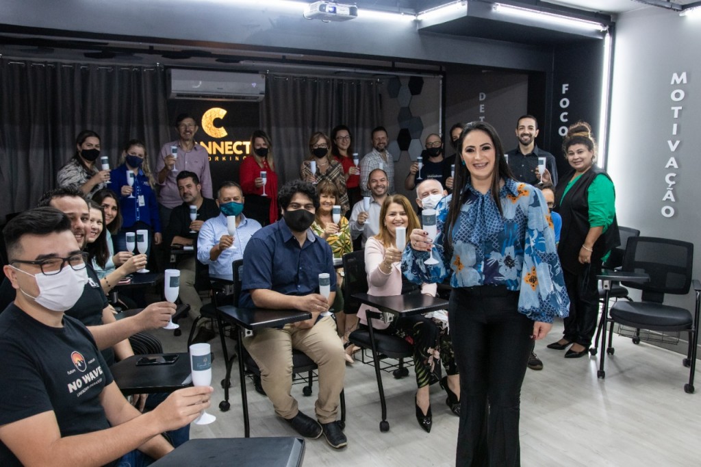 A ACIC, representada pela secretária executiva, Daniele Pinzon, esteve presente no lançamento da nova identidade visual da empresa Franciélli Gross Engenharia de Líderes Academy.