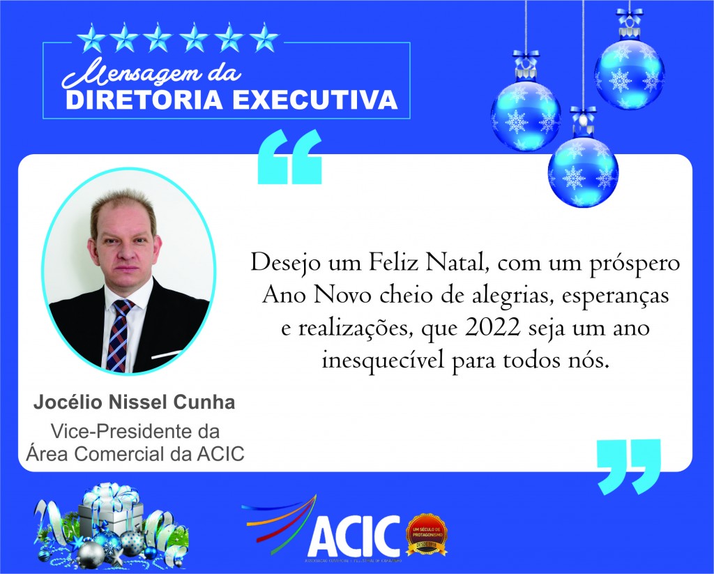 Para celebrarmos esse ano que se finda e a passagem das festas de fim de ano, a Diretoria Executiva da ACIC tem uma mensagem de Boas Novas a todos os ASSOCIADOS, AMIGOS e PARCEIROS!