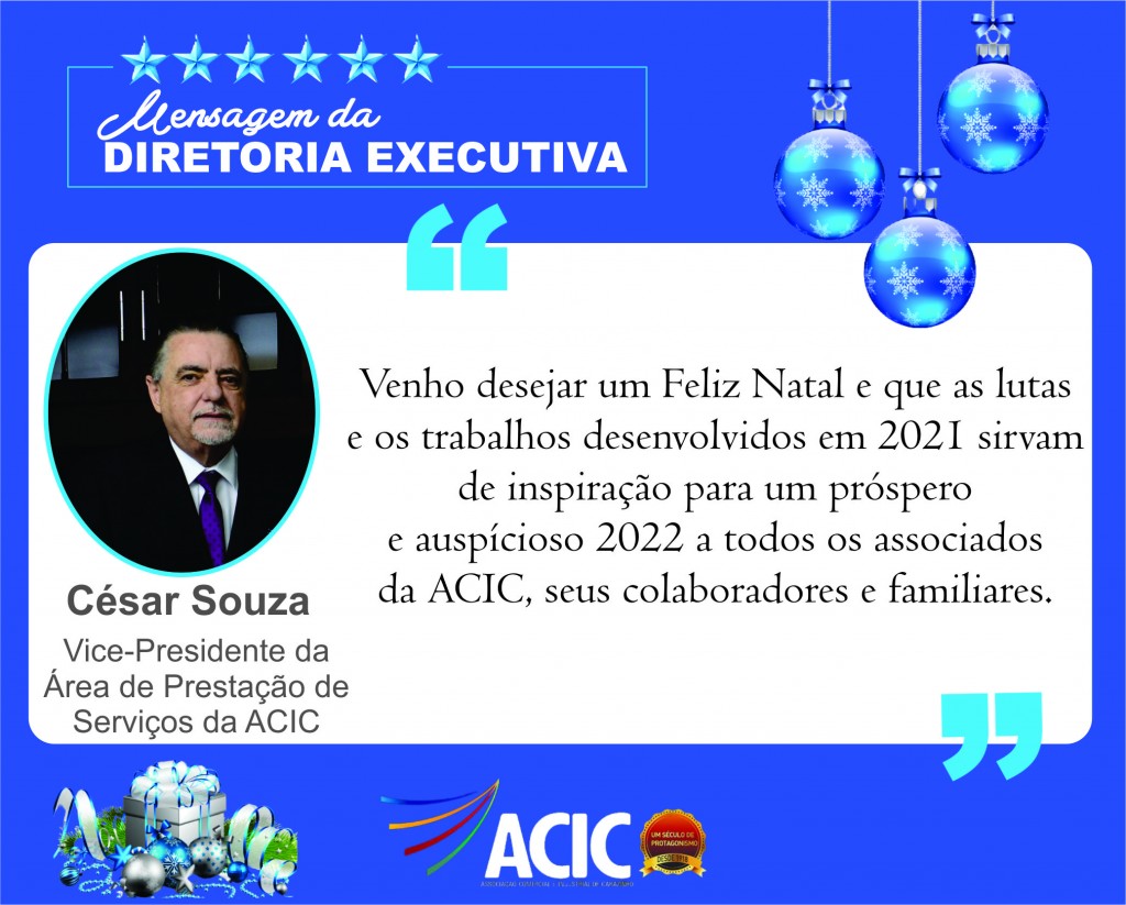 Para celebrarmos esse ano que se finda e a passagem das festas de fim de ano, a Diretoria Executiva da ACIC tem uma mensagem de Boas Novas a todos os ASSOCIADOS, AMIGOS e PARCEIROS!