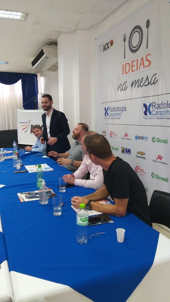 O Ideias na Mesa é um evento semanal da ACIC, que conta com o patrocínio das empresas, Carazinho Veículos; Supermercado Economia; Schuster & Medeiros; Seanet Radiologia Carazinho; Sicredi e SM Construções.