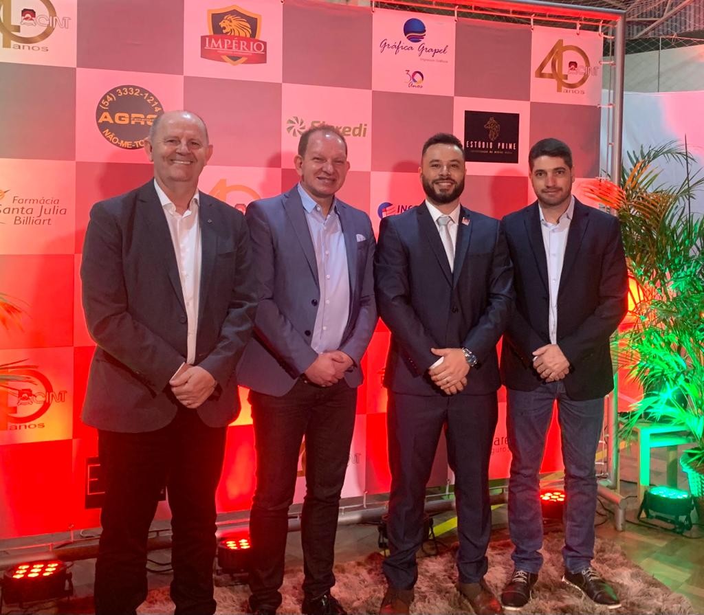 Na noite deste sábado (23) o vice-presidente da Área Comercial da ACIC e presidente em exercício, Jocélio Nissel Cunha esteve prestigiando os 40 anos da Associação Comercial, Industrial, Agropecuária e Serviços de Não-Me-Toque (ACINT) em um evento promovido pela Diretoria da entidade e que contou com a presença de diversas autoridades locais e regionais.