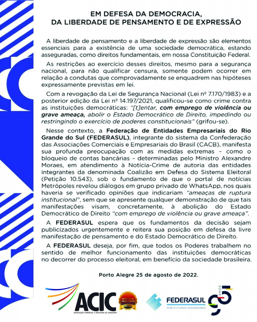 Em defesa da democracia da liberdade de pensamento e de expressão.