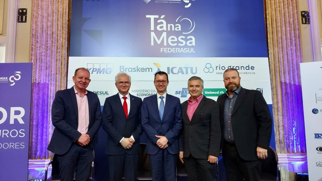 O presidente da ACIC, Júlio Eduardo Piva, juntamente com o vice-presidente da Área Comercial, Cassiano Scheibe Vailatti e o vice-presidente da Área de Prestação de Serviços da entidade, Jocélio Nissel Cunha estiveram no evento semanal da Federasul, Tá na Mesa. Na ocasião o Pe. Sérgio Mariucci, que é Reitor da Unisinos palestrou sobre: Universidade e empresa – Conexões pela Inovação. Ainda, foram prestadas homenagens aos 45 anos da Agrofel e o lançamento do Hub de Inovação Federasul - Unisinos.