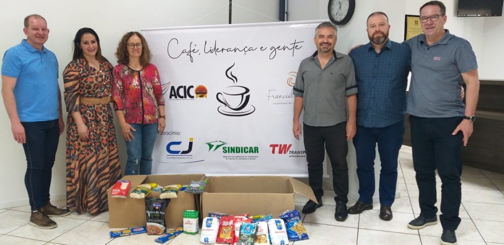 Na manhã desta terça-feira, 12 de dezembro o Presidente da ACIC, Júlio Eduardo Piva, o Vice-presidente da Área Comercial, Cassiano Scheibe Vailatti, o Vice-presidente da Área de Prestação de Serviços, Jocélio Nissel Cunha, o Diretor da Área Financeira da ACIC, Adilson Leonhardt Franck juntamente com a parceira do Projeto Café, Liderança e Gente, Franciélli Gross, realizaram a entrega dos alimentos arrecadados na palestra Ouse IR Além, realizada no dia 01 de dezembro com o palestrante Rodrigo Annunciação.