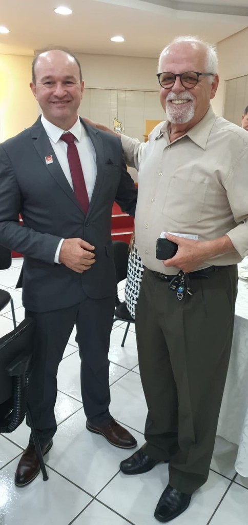 Na noite do dia dois de fevereiro, o Vice-presidente da Área de Agronegócio da ACIC, Antônio Augusto Guerra Bocorny esteve participando da Solenidade de Posse da Nova Diretoria da Associação Comercial, Industrial, Agropecuária e Serviços de Não-Me-Toque – ACINT gestão 2023, onde o Presidente Willian Garcia dos Santos encerrou sua Gestão e quem tomou posse como Presidente foi o Senhor Claudiomar Diefenthaler que assume a Gestão 2023. Na foto o Vice-presidente da Área de Agronegócio da ACIC, Antônio Augusto Guerra Bocorny com o Presidente da ACINT gestão 2023 Claudiomar Diefenthaler .