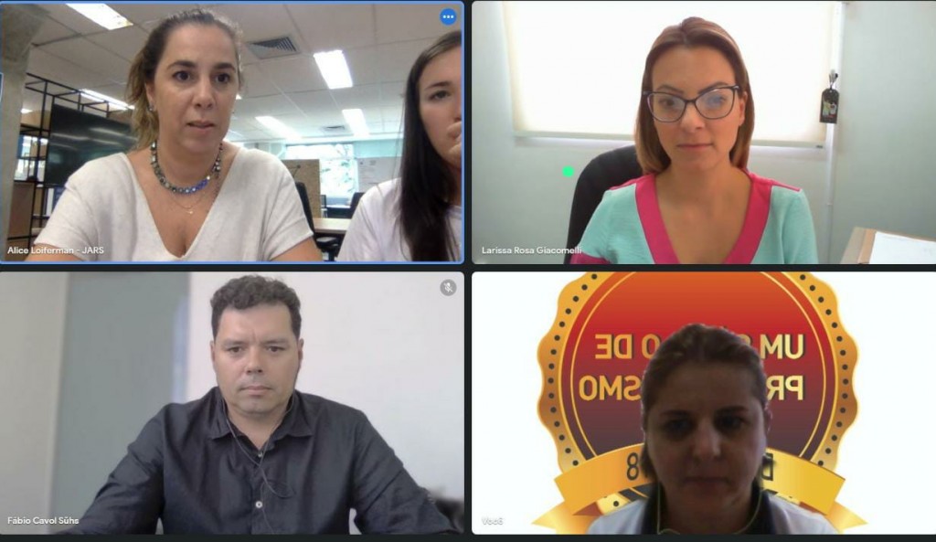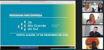 Na tarde de hoje, (23) a Coordenadora da Junior Achievement da ACIC, Larissa Rosa Giacomelli, o Diretor de Tecnologia da ACIC, Fábio Cavol Sühs e a Secretária Executiva da ACIC, Daniele Bandeira Pinzon estiveram participando de uma reunião online com a Diretora Executiva da Junior Achievement do Rio Grande do Sul, Aline Néglia.