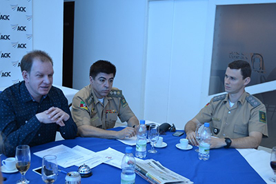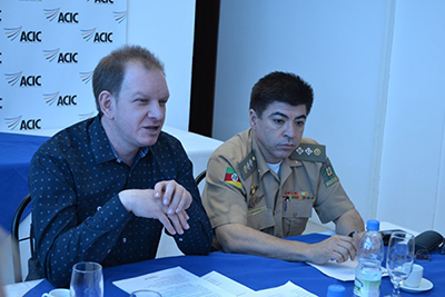 A reunião-almoço da Associação Comercial e Industrial de Carazinho (ACIC) desta segunda-feira, 10, recebeu o comandante do 38 Batalhão de Polícia Militar (BPM) de Carazinho, Major Eriberto Branco e o subcomandante, Capitão Jarbas Bohrer. O tema do encontro foi a segurança pública, principalmente no que diz respeito aos assaltos, furtos e arrombamentos a estabelecimentos comerciais ocorridos na cidade, nos últimos dias.