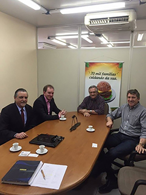 Na tarde desta sexta-feira, 14, o presidente da Associação Comercial e Industrial de Carazinho (ACIC) Jocélio Cunha, bem como o presidente do conselho deliberativo da entidade, Milton Schmitz e o vice-presidente de Serviços, César Souza fizeram uma visita de cortesia ao presidente da Aurora Alimentos, Mário Lanznaster. A visita aconteceu na sede da Cooperativa, que fica em Chapecó, SC.