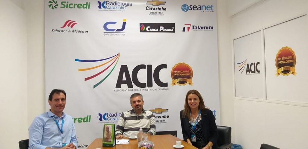 Presidente da ACIC, Júlio Eduardo Piva, recebeu na sede da entidade a Gerente Geral de Rede da Caixa Econômica Federal Agência de Carazinho, Dalva Ecker e do Gerente Executivo da Superintendência Executiva de Varejo de Carazinho, Junior Girotto.
