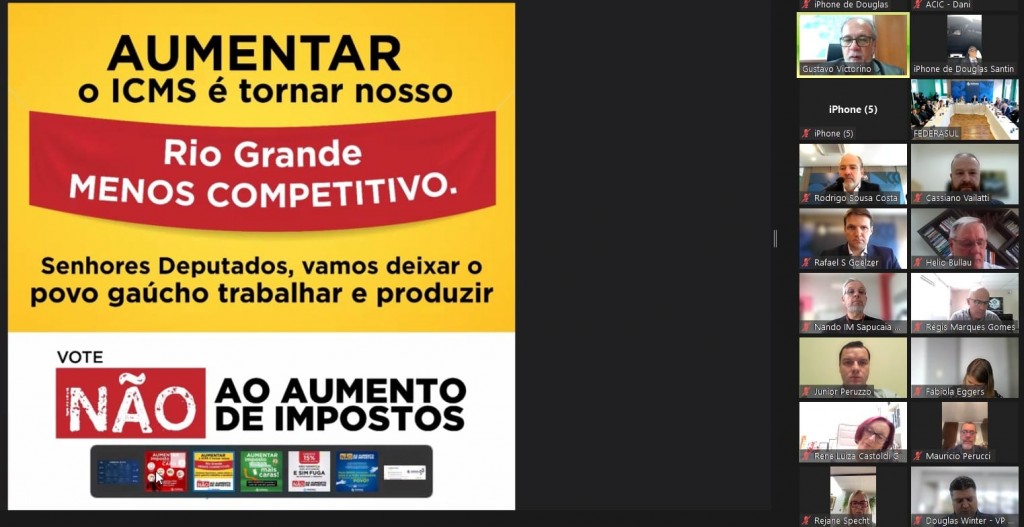 O encontro virtual teve como tema as votações do ICMS e Desoneração pela Câmara do Deputados Estaduais, que podem definir o custo de vida de milhões de gaúchos e a viabilidade de alguns setores no Brasil.