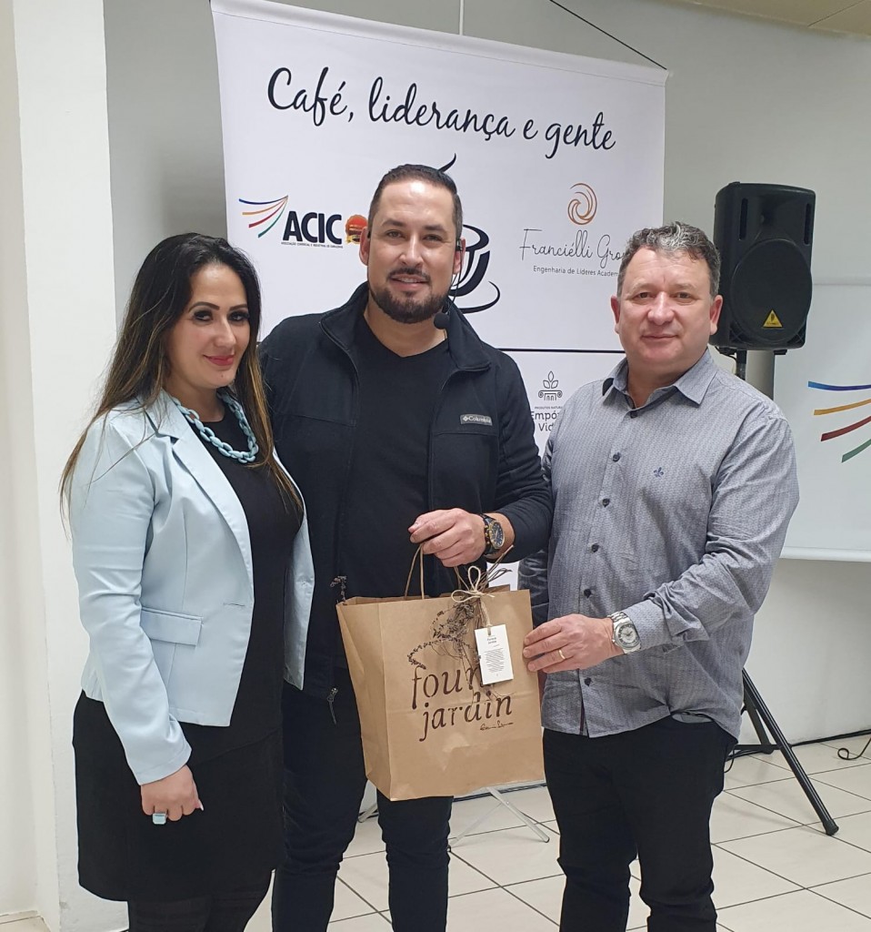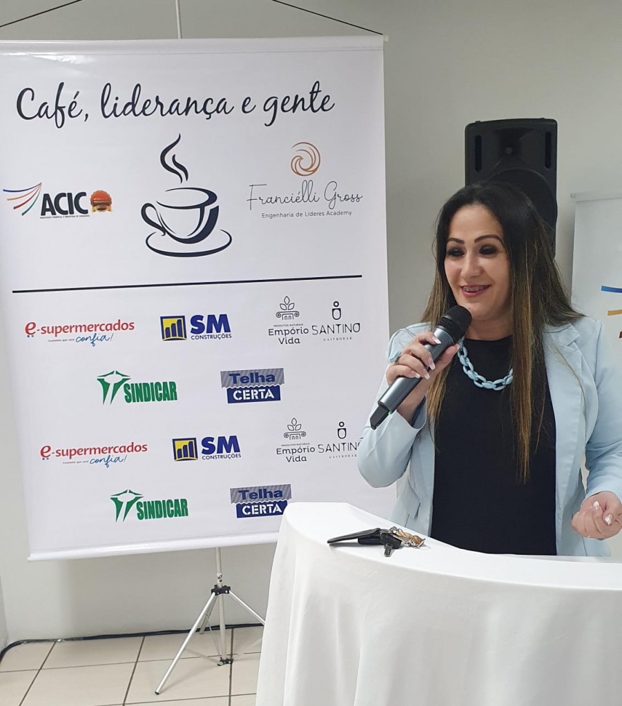O projeto "Café, Liderança e Gente" é desenvolvido pela ACIC em parceria com a Engenharia de Líderes Academy – de Franciélli Gross, a qual contou nesta edição com mais de 100 participantes e contou como ingresso 1kg de alimento, que será revertido a entidades assistenciais.