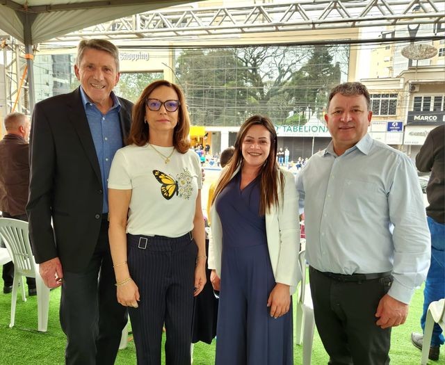 Na foto: Prefeito de Carazinho, Milton Schmitz, primeira-dama e Secretária Municipal de Desenvolvimento Social Andreia Schmitz, a primeira-dama da ACIC Ana Prestes e o Presidente da ACIC Josué de Oliveira Prestes.