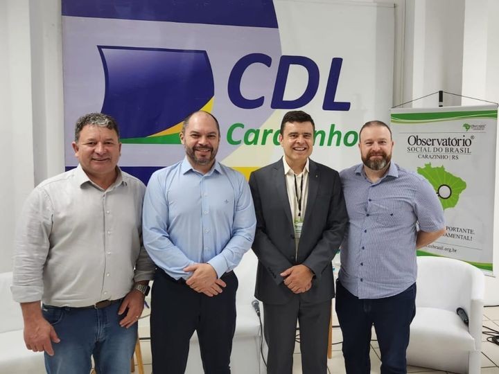 Na foto: Presidente da ACIC, Josué de Oliveira Prestes, o Presidente da CDL Carazinho, Zani da Costa, o Presidente do Observatório Social do Brasil – Carazinho, Douglas Muller, e o Vice-presidente da Área Comercial da ACIC, Cassiano Scheibe Vailatti