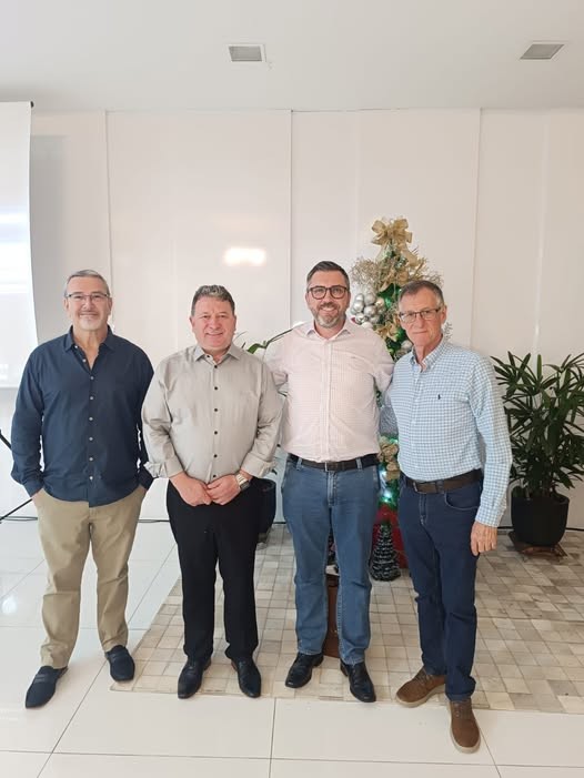 Na foto: Paulo Vargas, Vice-presidente do Sindicato Rural e membro do Conselho Fiscal da FARSUL, Josué de Oliveira Prestes, Presidente da ACIC, Antônio da Luz, Economista Chefe da FARSUL, e Leomar L. Tombini, Presidente do Sindicato Rural de Carazinho.
