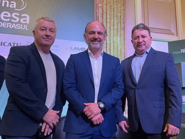 Na foto: Danilo Dal Zot Flores, Vice-presidente da Área de Agronegócio da ACIC, Rodrigo Sousa Costa, Presidente da Federasul, e Josué de Oliveira Prestes, Presidente da ACIC.