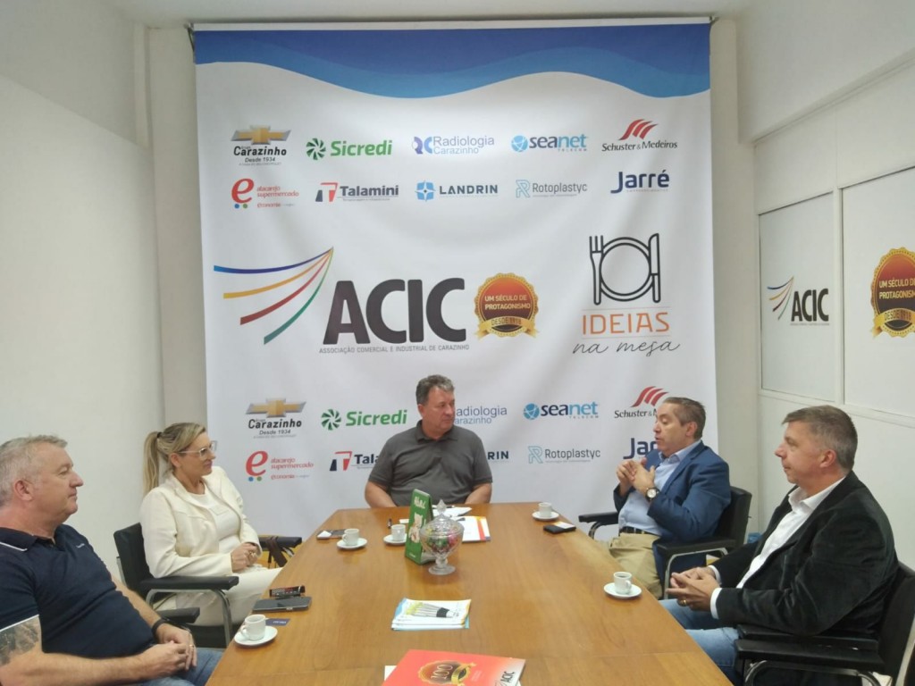 Presidente Josué de Oliveira Prestes, juntamente com o Vice-presidente da Área do Agronegócio, Danilo Dal Zot Flores e a Vice-presidente da Área Industrial, Carine Leite da Silva receberam na sede da entidade Daniel Gobbi da Empresa Prosperar Empreendimentos Imobiliários Ltda, empresa associada ACIC, e o Sr. Weslen Sousa Silva Advogado Especialista em Soluções Tributárias e Fundador da Empresa Fiscali Soluções Tributárias de Belo Horizonte (MG), para uma apresentação da Empresa Fiscali que está se instalando no município de Carazinho.