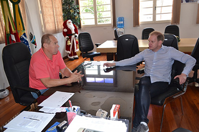 Nesta segunda-feira, 28, o presidente da Associação Comercial e Industrial de Carazinho (ACIC) Jocélio Cunha fez uma visita institucional ao prefeito em exercício, Paulino de Moura. O prefeito Renato Suss está de férias e por isso, na falta do vice-prefeito, que faleceu no mês de outubro, o presidente da Câmara de Vereadores assumiu a função.