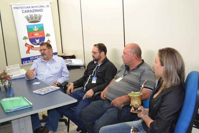 Nesta quinta-feira, 4, aconteceu na Secretaria Municipal de Desenvolvimento uma reunião com o secretário geral da Junta Comercial do Estado, José Tadeu Jacoby e a gerente de políticas públicas do SEBRAE/RS, Janaína Zago Medeiros, para tratar da inclusão do município na REDESIM. O presidente da Associação Comercial e Industrial de Carazinho (ACIC) Jocélio Cunha, o prefeito Renato Süss, a secretária de Desenvolvimento Luciana Basso e o secretário de Planejamento Roberto Klein, também estiveram presentes.