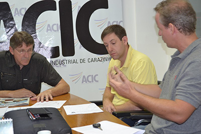 Uma reunião ocorrida hoje, 08, na sede da Associação Comercial e Industrial de Carazinho (ACIC) tratou dos trâmites técnicos para a construção de uma rua próxima ao trevo de acesso a Carazinho pela BR 285. Participaram da reunião o presidente do Conselho Deliberativo da ACIC, Milton Schmitz, os empresários Neri Krüger e Alexandre Gerhardt, o secretário de Planejamento, Roberto Klein, o presidente do Sindicar, Moisés Santos, a executiva interina do Sest/Senat Sandra Dellatorre e técnicos da área da construção civil.
