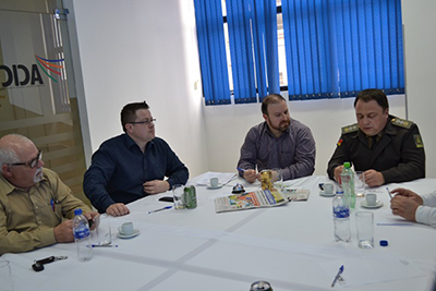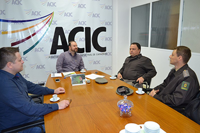 A reunião-almoço da Associação Comercial e Industrial de Carazinho (ACIC) desta segunda-feira, 29 foi extraordinariamente presidida pelo vice-presidente Comercial da entidade, Cassiano Vailatti. O tema do encontro foi a segurança pública e estiveram presentes o Major Gefferson Rodrigues, Comandante do 38 Batalhão de Polícia Militar (38 BPM) e o Capitão Jarbas Bohrer, Chefe de Seção do 38 BPM.