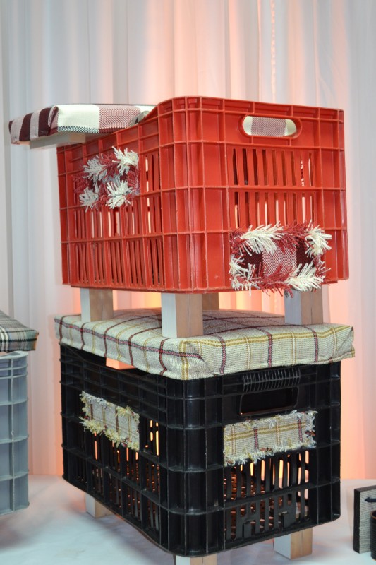 Pandor – Colégio Notre Dame Aparecida: A miniempresa desenvolveu o Pand, produzido com caixas de fruteiras, madeira e tecido. O objeto é um banco baú, que pode ser utilizada para diversas finalidades, que por ter um espaço interno que contempla necessidades de ambientes como quiosques, salas, quartos, é um objeto muito útil. O estilo rústico e cores variadas de adapta a vários ambientes. Ele está sendo comercializado no valor de R$55,00.