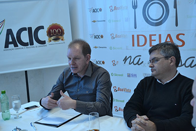 Ideias na Mesa é um evento semanal da ACIC e faz parte das ações de comemoração dos 100 anos da entidade, que serão completados em 15 de janeiro de 2018. As empresas patrocinadoras do evento são: Carazinho Veículos, Hipermercado Boa Vista, Sicredi, SM Construções e Telha Certa.