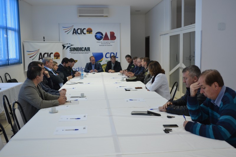 Nesta quinta-feira, 03, uma nova reunião ocorrida no Palácio do Comércio, em Carazinho, discutiu a questão da segurança pública na cidade. Participaram o prefeito Milton Schmitz; o secretário municipal de Desenvolvimento, Deninson Costa; o secretário da Fazenda, Adroaldo De Carli; o assessor jurídico da prefeitura, Antônio Azir; o presidente da Câmara de Vereadores, Estevão De Loreno; o comandante interino do 38 BPM, capitão Jarbas Bohrer; a delegada Rita De Carli; o policial rodoviário federal, Carlos Alberto Rezende; presidentes e representantes das entidades de classe e empresariais do município.