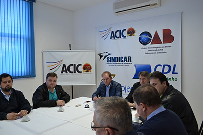 O presidente da ACIC, Jocélio Cunha explicou aos presentes a motivação do encontro. "Temos nos reunido periodicamente em busca de soluções para a segurança pública. Fizemos isso em seguida ao latrocínio que vitimou o empresário Décio Jost e depois disso ainda tivemos outros episódios lamentáveis, como o assalto à joalheria do ex-prefeito Renato Süss, ontem. Estamos tentando buscar uma solução para o aumento da criminalidade em nossa cidade", pontua.
