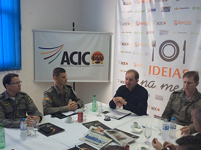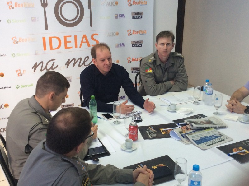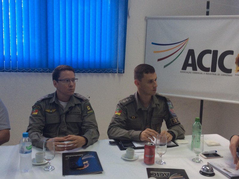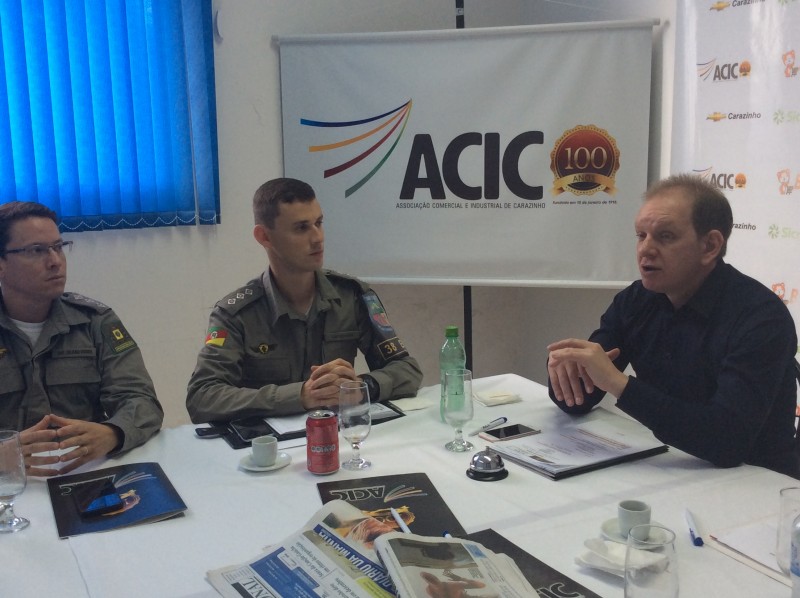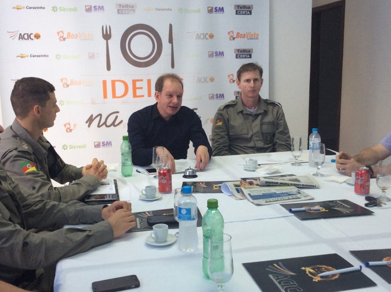 O Ideias na Mesa da Associação Comercial e Industrial de Carazinho (ACIC) desta segunda-feira, 09 recebeu o comando do 38 Batalhão de Polícia Militar (38 BPM) de Carazinho, para falar sobre segurança pública. Estiveram presentes o comandante, Major Ulisses Denardi Jr.; o subcomandante, Capitão Jarbas Bohrer e o comandante da 1ª Cia, Capitão Juliano Moura.