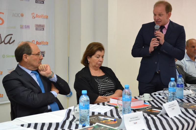 O prefeito Milton Schmitz também parabenizou o deputado Ronaldo pelo seu desempenho enquanto ministro, bem como agradeceu aos deputados presentes que sempre dão atenção ao município, inclusive ao secretário de Estado, Márcio Biolchi, que auxilia a administração municipal sempre que solicitado. “Posso dizer que tenho muito orgulho de estar no MDB pelo trabalho que o governador José Ivo Sartori vem realizando. Torcemos para que os gaúchos acreditem novamente no senhor, governador”, disse o prefeito, completando que sua administração junto do secretariado, está elevando o protagonismo da nossa região, inclusive com a parceria da ACIC.