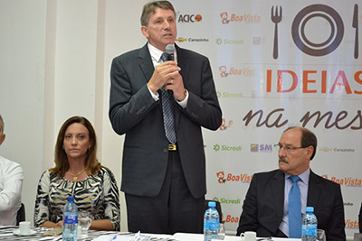 Em sua manifestação inicial, o presidente da ACIC, Jocélio Cunha, parabenizou o deputado federal Ronaldo Nogueira pelas modernizações nas Leis Trabalhistas realizadas por Ronaldo quando ministro. Lembrou também que o prefeito Milton Schmitz fez parte da diretoria da ACIC, e desde o ano passado, muito orgulha a entidade sendo prefeito de Carazinho. “Parabenizamos o prefeito Milton que tem feito um excelente trabalho junto da sua equipe. Saúdo também nosso governador do Estado José Ivo Sartori que tem tomado as decisões corretas para o crescimento do nosso Estado. Sabemos que o governador não está trabalhando somente pensando em reeleição, mas em prol do desenvolvimento do Rio Grande do Sul. É uma honra abrir o Ideias na Mesa 2018 com a presença do nosso governador”, declarou Jocélio.