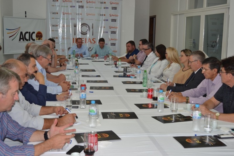 Acompanhado dos secretários de Obras Estevão De Loreno e de Planejamento, Vanderlise Girardello, o prefeito Milton Schmitz foi o convidado especial do Ideias na Mesa da ACIC nesta segunda-feira, quando apresentou as principais metas da gestão para o ano de 2018 e os avanços conquistados até o momento na gestão municipal. Durante a reunião, uma das pautas discutidas entre os diretores foi o impacto para Carazinho após a rejeição pela Câmara de Vereadores do projeto do Executivo permitindo a abertura do comércio aos domingos nas rodovias federais. Na ocasião, o presidente da ACIC Jocélio Cunha reiterou a posição da entidade sobre a matéria e a preocupação em relação ao posicionamento da Câmara. "O mais grave é a mensagem que o município passa para os futuros investidores. Uma mensagem de resistência às mudanças e à livre iniciativa" lamentou Jocélio. O posicionamento da Câmara também foi motivo de um breve pronunciamento do prefeito Milton Schmitz que esclareceu os motivos de ter enviado o projeto para a Câmara, mesmo podendo decidir via decreto. Segundo ele, a aprovação pelo Legislativo era uma exigência da Havan. "Além disso, nossa intenção foi ampliar o debate junto à comunidade, uma vez que esse é o nosso jeito de governar", afirmou, acrescentando que o Executivo não esperava outro resultado senão o projeto ser aprovado pela unanimidade. "Infelizmente, porém, tem gente preocupadíssima só com as próximas eleições e, por isso, transformaram um projeto desta importância em uma questão política. Espero que a comunidade preste atenção nisso", desabafou o prefeito, ao mesmo tempo que anunciou que estará enviando uma correspondência às entidades para que se posicionem por escrito se querem ou não a Havan em Carazinho. “Tenho que ter certeza se Carazinho quer a Havan, caso contrário, eu mesmo faço questão de devolver aos cofres públicos as despesas que tivemos até agora para trazer a empresa para o município, referente à viagem que fizemos até Brusque”, afirmou. Para o prefeito, Carazinho está pronto para assumir o papel de protagonismo na região, mas para isso “é preciso olhar além do Rio da Várzea”.