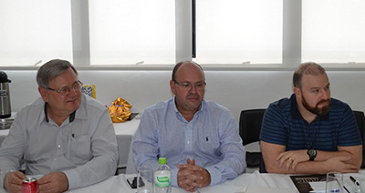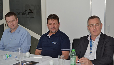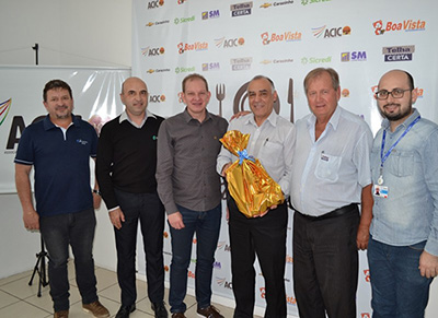 O Ideias na Mesa da ACIC desta segunda-feira recebeu como convidado especial o diretor da unidade da Nestlé de Carazinho, Anselmo de Souza, que esteve acompanhado do coordenador de Recursos Humanos, Tiago Miranda. Logo na abertura, o presidente Jocélio Cunha destacou a importância da entidade receber representantes de empresas da importância da Nestlé, que representam uma referência para Carazinho, elevando o nome do município para todo o país. Além dos representantes da Nestlé, participaram da reunião como convidados os integrantes dos Conselhos Deliberativo e Fiscal da ACIC, Josué de Oliveira Prestes e Marcos Adriano Ribas Pinzon. Também esteve presente o presidente do Sindicar Moisés Antônio dos Santos, que aproveitou para convidar os diretores para a inauguração do Complexo Sest-Senat na próxima quinta-feira, às 17 horas. O investimento, segundo ele, no total de R$ 15 milhões, é um dos maiores no sul do país, sendo que a estrutura irá beneficiar toda a comunidade regional.