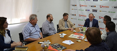 O diretor do grupo Toniato foi recebido pelo presidente da ACIC, Jocélio Cunha, que destacou a importância do empreendimento para o desenvolvimento de Carazinho. O prefeito Milton Schmitz aproveitou para agradecer a confiança da direção do Grupo nas potencialidades de Carazinho. Ao mesmo tempo, destacou a forma de gestão da empresa, que prima pela postura ética junto aos clientes e grande respeito na relação com os colaboradores. André Façanha ressaltou o papel fundamental que o Prefeito, ainda como empresário do setor de Transportes, teve para concretizar a instalação da empresa em Carazinho, e ao mesmo tempo, todo o esforço da Prefeitura no sentido de agilizar o processo que iniciou ainda em 2015, com a compra da primeira área e culminou na inauguração da empresa em 2017. Além de apresentar os valores que permeiam a gestão da empresa, Façanha apresentou o portfolio de clientes da empresa e a estrutura da Toniato em todo o país. A empresa que trabalha com transporte, logística e engenharia possui mais de 2 mil colaboradores, 1.000 veículos, sendo 700 próprios e 250 mil m2 de área construída. “Falando em valores, temos mais de R$ 3 bilhões confiados em nossas mãos”. O empresário que retornou de uma viagem ao Vale do Silício recentemente garantiu que independentemente da crise econômica, a empresa continua fazendo investimentos contínuos, o que garante um grau de satisfação dos clientes de 96% quanto a eficiência das entregas. Garantiu também que em função da localização de Carazinho, a empresa tem planos de ampliação no município, anúncio que foi comemorado pelos diretores da entidade. “Não viemos para cá para fazer turismo. Viemos para ficar”, concluiu o diretor.