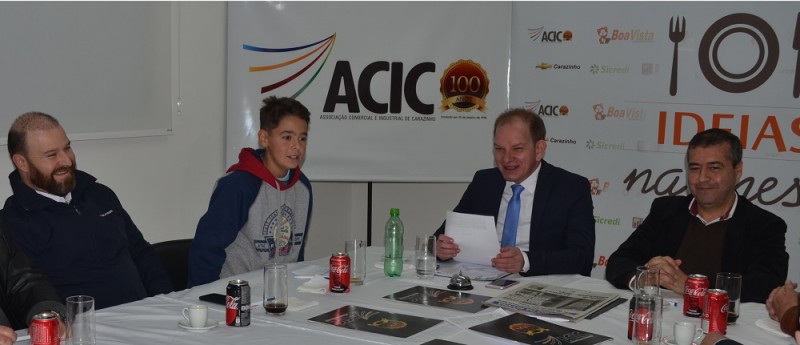 Ideias na Mesa é um evento semanal da ACIC, que conta com o patrocínio das empresas Carazinho Veículos, Hipermercado Boa Vista, Sicredi, SM Construções e Telha Certa.
