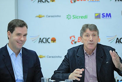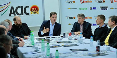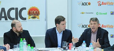 Na abertura da reunião almoço o presidente da ACIC Cassiano Scheibe Vailatti discorreu sobre a presença do deputado federal. “Temos orgulho e satisfação em tê-lo aqui conosco, e agradecemos imensamente sua presença para mostrar-nos um pouco mais da sua visão sobre a atual situação do Estado” saudou o presidente.