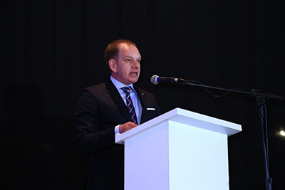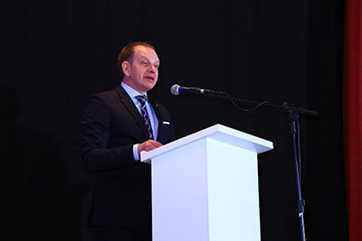 Representando o governador do Estado, o Secretário de Obras, Saneamento e Habitação do Estado, Sr. Rogério Salazar leu no palco uma carta oficial enviada pelo governador Sr. José Ivo Sartori, onde ele agradeceu pelo recebimento do troféu. “Saúdo a todos os presentes e a nova Diretoria Executiva da ACIC, sinto-me honrado pela homenagem e parabenizo a família ACIC desejando um biênio de muita construção e crescimento coletivo da entidade e de todo o Carazinho e região” palavras do Governador, Sr. José Ivo Sartori.