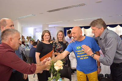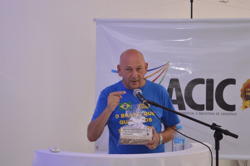 Milton Schmitz, prefeito de Carazinho também discursou brevemente antes do convidado especial, disse estar entusiasmado com a presença de Luciano Hang. “Para nós do Poder Executivo é uma honra participarmos deste evento tão grandioso em que a ACIC nos proporcionou, receber o Luciano Hang que é uma figura ilustre do meio empresarial não tem preço! Espero que ele olhe com carinho para nossa cidade e que todo o esforço em que o poder público vem desenvolvendo em nosso município mostre o quanto estamos dispostos a receber novos empreendimentos” afirmou o prefeito.